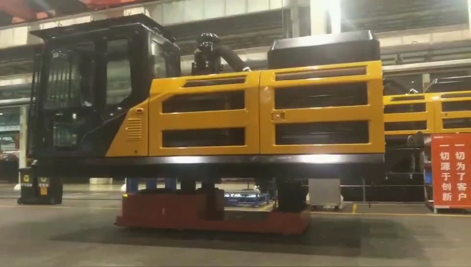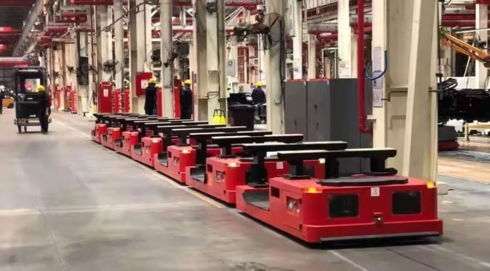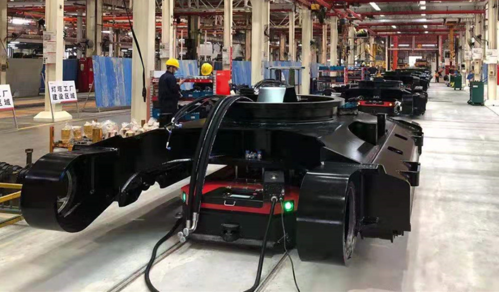 25台重载AGV——国自助力某大型挖掘机工厂打造柔性产线!